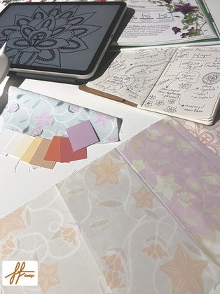 Cypress Muse is a bohemian-inspired mini collection featuring flowing paisleys, lotus blooms and winding cypress vines in rich, sun-warmed tones balanced with soft neutrals. Intricate digital linework and mirrored floral forms give the prints a sense of movement and gentle ornamentation. Symbolizing new beginnings and hope, this collection is designed to bring warmth, softness and storytelling into textiles, nurseries and home decor.