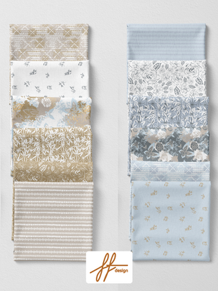 Inspired by Japanese motifs from traditional textiles such as roketsome and block printing. This collection features detailed drawings of butterflies, roses, block print motifs, bamboo and abstracted script. The soft blue pair with yellow, gold and navy make for a rich collection with designs suitable for apparel, accent wallpaper and journal covers to name a few.